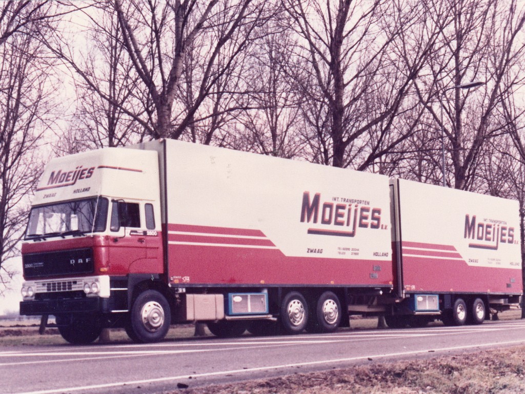 In 1988 leverde DAF zijn 100ste wagen aan Moeijes af. In de jaren daarop volgden er nog velen. In 1991 werd de 150ste DAF geleverd. Eind jaren ’90 werden ook vrachtauto’s van andere merken gekocht waarmee nr 200 werd bereikt. Intussen was in 1984 in Zwaag een nieuwe garage met 1000 m2 opslagruimte gebouwd. Deze opslagruimte is later in 2 fasen uitgebreid naar 8000 m2 deels voorzien van dockshelters. Inmiddels zijn de vestigingen in Born en Aken gesloten omdat het bananenvervoer vanaf Antwerpen steeds minder belangrijk werd.